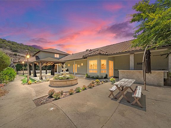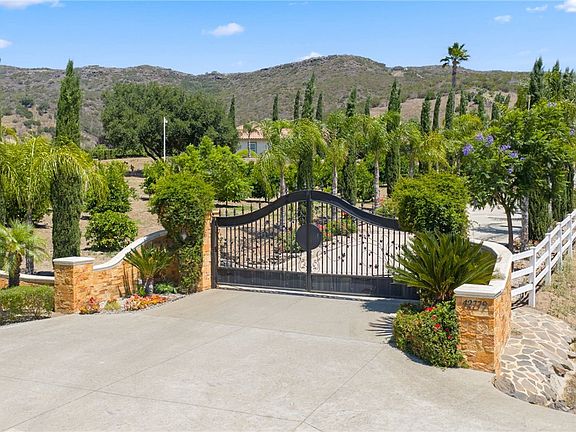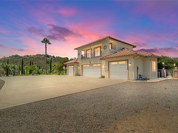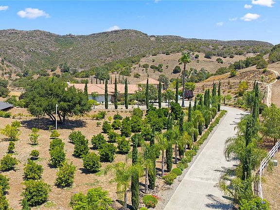 This Magnificient Mediterranean Estate is located in the prestigious are of De Luz - often called Millionaire's Row - Adjacent to the Santa Rosa Plateau and just 10 minutes from Interstate 15! Very Private - Located on approximately 11 acres of gentle land, with numerous fruit trees and flowers, fenced garden areas, chicken coop, and perfect ara to plant additional vineyards, citrus, for Equestrian uses, and plenty of room for tennis or pickleball courts! Entering the elegant property through the gated entrance, up the gently curving driveway lined by roses, you will be happy to be home! The open floor plan has approximately 4,530 square feet, with 4 bedrooms plus an office that could be converted to a bedroom by constructing a closet, and 3 1/2 baths on the main floor, plus a large office/gym/theatre room upstairs, with a 3/4 bathroom with shower upstairs! The over sized 1,800 sf - 4 car garage plus workshop area, offers room for any vehicle, and plenty of storage - plus there are 2 separate 200 amp, 3 phase electrical panels with 220 v. outlets throughout the garage. The newer Solar system will reduce your electric costs substantially!