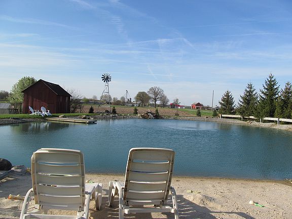 Spacious 4br 2-story farm house totally renovated inside and out, located on 1.28 acres with 1/3-acre stocked pond w/waterfalls, sandy beach, dock and cabana. Four-stall garage, barn with electric and water, and garden shed. Open floor plan with hardwood floors throughout main level features great room with wood burning stove and large updated eat-in kitchen. Master bedroom on first floor with sliding glass doors onto rear deck with hot tub. Full basement with waterproof baseboard system, walk-in food pantry, built-in storage shelves, and laundry room. Wrap-around porch enables panoramic views of sunrises and sunsets. Whole house generator and much, much more. All the outdoor amenities make this home the perfect "stay-cation." Lush landscaping includes beautiful perennials, mature trees, apple, peach and pear trees. The pond, beach, 13x25 cabana with electric and ceiling fan, and hot tub are great for entertaining! Additional features: New basement walls and septic system and gas forced air furnace Additional property info: http://www.forsalebyowner.com/listing/4-bed-Single-Family-home-for-sale-by-owner-4278-Dunbar-Rd-43342/23988314?provider_id=28079