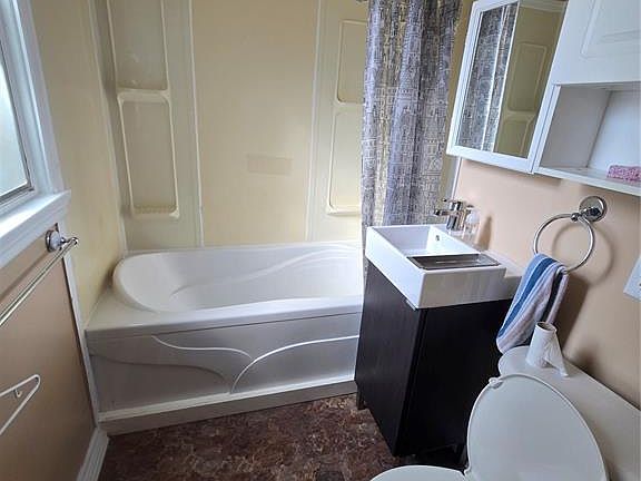 Updated laminate flooringRenovated bathroomUpdated siding and shingles