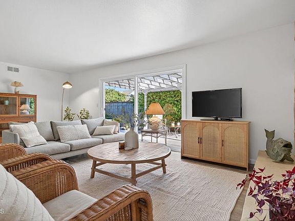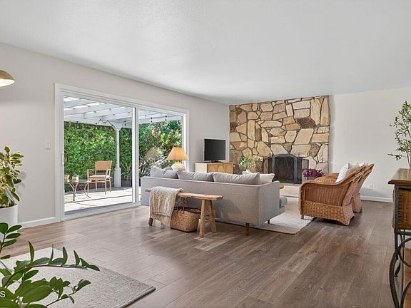 Set on a prime corner lot in the peaceful foothills of Santa Paula, directly across from a picturesque avocado orchard, this immaculate and highly upgraded single-story home is a true gem. Framed by a charming exterior, drought-tolerant landscaping, and a stunning mountain backdrop, the residence welcomes you inside with warm wide-plank flooring, soothing neutral tones, and elevated finishes throughout. The beautifully remodeled kitchen captures serene views of the orchard and features timeless quartz countertops, soft-close cabinetry, stainless steel appliances, and a spacious counter bar perfect for casual dining. Designed for connection and gathering with loved ones, the kitchen opens to a bright dining area that flows into the expansive living room- centered by a classic stone fireplace and illuminated by warm natural light. Large glass sliders invite you outdoors to the private patio and backyard--an ideal setting for family barbecues, al fresco dining, or quiet evenings spent enjoying Santa Paula's ideal climate. Down the hallway, you'll find three bedrooms with mountain views, a full guest bath, and a serene primary suite offering a generous walk-in closet and brand-new (2025) ensuite bath. Every detail has been refreshed, from the tiled walk-in shower and new vanity, to contemporary flooring and fixtures. Additional highlights include an attached two-car garage, RV parking, plumbed exterior drainage, and underground utilities. Perfectly located near charming downtown Santa Paula, local trails, parks, shopping, and with easy 101 access, this home offers the best of relaxed living and modern convenience. Don't miss the opportunity to make this exceptional home your own.