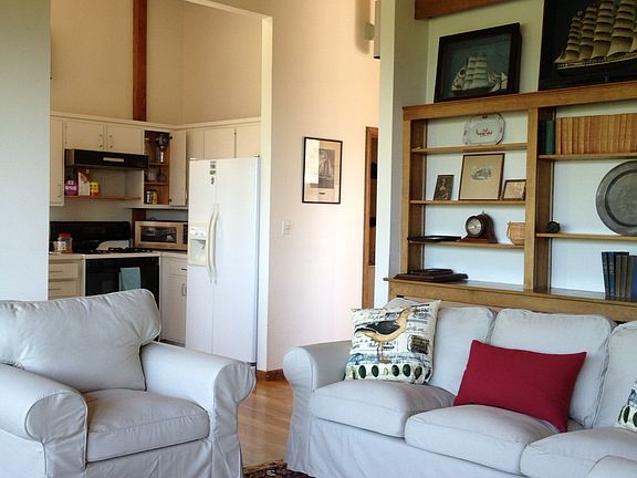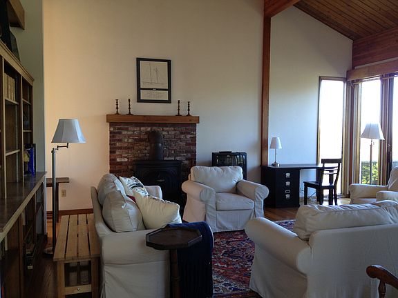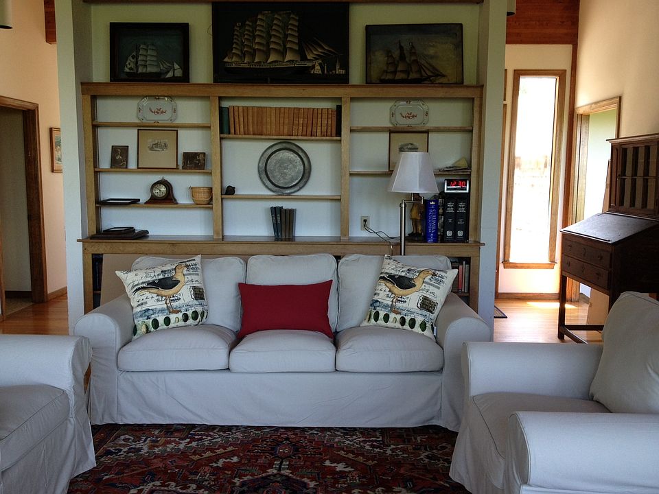 Looking to try out Cohasset before you buy? Need a house for the school year? Renovating your own house in a major way? Or just need a house soon? This is a cosy, simple house, in a beautiful setting looking over the ocean. There's private beach access, peace and quiet. Living room, eat in kitchen/family room, den or office (with separate entrance, and sleep sofa) . Three bedrooms, two with queen beds, one with twins that can be bunked. Wood fireplace. Deck for fall and spring sun. Everything you need except your laptop or iPad: linens, dishes, cookware, etc. Close to commuter rail and the Hingham ferry. This house is very near the intersection of Atlantic Ave and Jerusalem Road. It is off the road, so driving by doesn't work well. This is a 9 or 10 month rental available 9/1-6/30.
