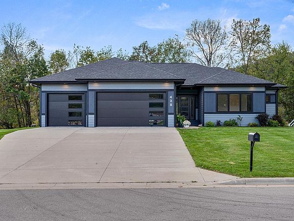 Experience luxury living in this top-of-the-line 2021 custom-built walk-out ranch located in highly desirable Horse Track Meadows. This 4-bedroom, 3-bath home showcases exceptional craftsmanship and modern design throughout. Step into a chef's dream kitchen featuring custom cabinetry, granite countertops, a large center island, gas cooktop, black stainless appliances, and a convenient coffee/wine bar w/ wine fridge. The open-concept living area includes a striking fireplace and elegant finishes that make this home both stylish and comfortable. The primary suite offers a private retreat w/ dual vanities, a walk-in tile shower, & a spacious walk-in closet. Main floor laundry & a large mudroom add everyday convenience. Enjoy breathtaking sunsets from the covered deck & outdoor kitchen!