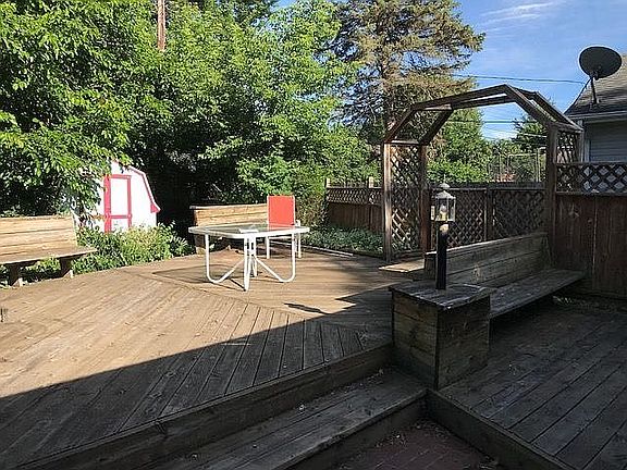 4 Bedrooms as it is now, or make the lower level bedroom an office. Newly carpeted family room in finished basement featuring a gas fireplace (half above grade), formal living room, dining room and 2 Full Bathrooms. Home has hardwood floors in living room and in three bedrooms upstairs. Fenced backyard features new shed, large multi-level deck, arched opening perfect for climbing florals, built-in flower boxes and brick edged landscaping. 1&1/2 car garage with plenty of storage shelving. Garage has newly installed door opener with exterior keypad. Walking distance to Springview Elementary, one block to bus for Middle School/High School. Two blocks from quaint park with basketball court and baseball diamond. Perennials planted throughout the property.