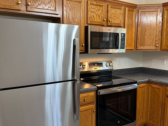 This three bedroom two bath apartment has all new laminate vinyl plank, flooring throughout, new appliances, new paint, and a large open living space with vaulted ceiling. Tenant is responsible for electric, gas, and water/sewer. Pets considered with a pet deposit and $50 per month per pet. Note: the three garages below the apartment are rented out separately.