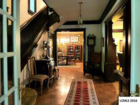 Introducing Charm and Charisma. This two story home has much of the original wood work throughout main level. Entering this home you find a spacious sun room with ceramic flooring and beamed line ceiling. Once through sun room you walk into parquet floored foyer with an open staircase boasting leaded glass windows along stairway. To the right is a large living room with beams, wood burning fireplace and a leaded glass window which looks out into the greenhouse. Attached through bi-fold doors you find a quaint library with a wood burning fireplace. The home has a formal dining room with parquet flooring, leading into a brand new kitchen spring of 2017, new cabinets, counter top, flooring,light fixtures, sink and faucet. The main level has a full bathroom with a stacked w/d unit. Up the staircase to the second floor you will find two full baths and three bedrooms. The master bedroom is spacious and has an area for either a seating area or nursery. There is a floored attic above bedroom area to use for extra storage. Whole house attic fan. There are two central area units, one for upstairs and one for down. The home has hot water heat. Fenced in back yard. The two car detached garage is doubled with back end usable as a workshop. There is a single garage door from workshop area that makes easy access for your mower and other yard tools. There is also an outside entrance into the small greenhouse that is attached to home. A good place to put your plants in the winter time. Home is situated on a corner lot.