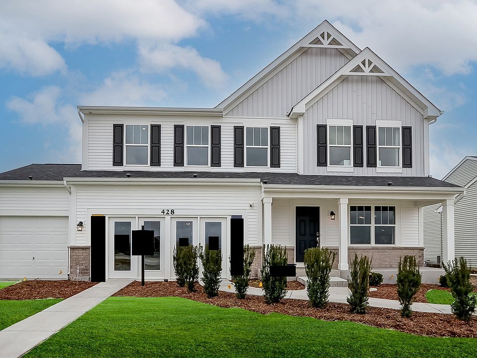 Welcome to the 2,289 square foot Quinn model in South Elgin! First, admire the grey and white vinyl exterior with black shutters and stone at the base. A tree-lined walkway will guide you up to the expansive covered porch with 3 pillars. A beautiful flex room with dark, built-in shelving sits just inside, giving you a space to set up a desk and arrange books and decor. This room is complemented by a modern lighting fixture. In the main living space straight ahead, a dining area with a black chandelier unites the kitchen and family room in one bright and open space! A white, built-in entertainment center with a mounted TV and shelving lines the side wall of this spacious family room. This room is outfitted with a sectional, wall art, an area rug, and a coffee table to tie it all together. You'll adore the kitchen in this home, which includes the following highlights: White cabinets Quartz countertops A corner pantry GE stainless steel appliances An eat-in island with cabinetry below 2 pendant lights above This model even features a morning room with vaulted ceilings! With 4 windows on the side walls and sliding glass doors to your backyard, natural light pours into this beautiful addition. Venture upstairs and into your owner's suite where you'll be greeted by a lovely, vaulted ceiling with a modern hanging light and an accent wall. This suite boasts an attached bathroom with 2 sinks on a long, white vanity. The laundry room, 3 secondary bedrooms, and another full bathroom with a 2-sink vanity round out the second floor. Rounding out this home is a 9 foot basement with a rough-in for a future bathroom. Broker must be present at clients first visit to any M/I Homes community. Lot 71 *Model home for sale. Home to close March 2026*