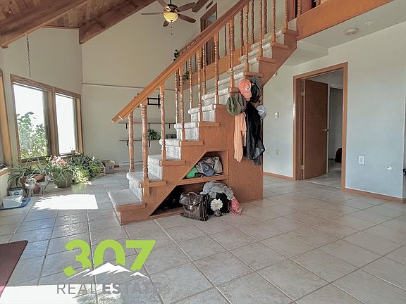 Set on 20 acres, this unique energy-efficient bermed home combines character, comfort, & thoughtful updates. The main level features an evenly divided living room & dining room highlighted by tongue-and-groove ceilings, a bonus room that could be utilized as an office, a full bathroom and kitchen. The second story features 3 bedrooms, a Jack & Jill style full bathroom & a versatile bonus room. The efficient U-shaped kitchen offers abundant cabinetry & distinctive details, while the wood stove not only provides warmth but has even been used for cooking during the cooler months. A central staircase leads to the upper-level & bonus space, perfect for additional sleeping area, office, or hobby use. The sellers have invested extensively in this property over the last 12 years, with improvements including all new windows in 2024 and a new roof in 2023. A complete list of additional upgrades is available to serious buyers. Practical amenities include a 2-car garage & a laundry/utility room. Outdoors, you’ll find a little over an acre of maintained grass, clover, & alfalfa pasture just south of the horse barn which is easily irrigated with the gated pipe. The barn itself features two stalls, a spacious work area, and all-new electrical service with outlets & lighting installed in 2024. This property offers space, privacy, and versatility—ideal for those seeking a rural setting with room to spread out, enjoy animals, or simply appreciate Wyoming living on a larger acreage.