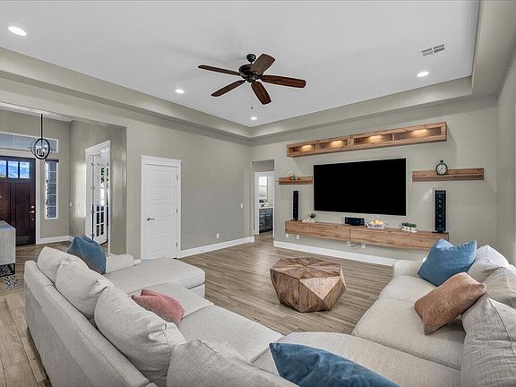 Rv parkingCovered patioSeparate showerSoaking tubCustom tile backsplashTwo-tone cabinetryOpen layout