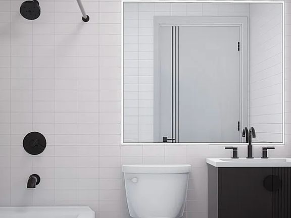 A 2-bedroom, 1-bathroom apartment with full amenities in a building with stainless steel appliances and plenty of natural light is appealing. Having an office space in the building for those who work from home is always a plus. Plenty of closet space. Being close to public transportation, and restaurants, and having parking available are also huge conveniences. And having a state-of-the-art fitness center and a bar/social space is the cherry on top!