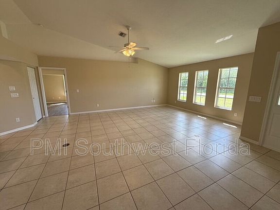 Charming and pristine, this well-kept, spacious, and breezy home features 3 bedrooms and 2 bathrooms. Tile floors, open floor plan, large screened lanai great for entertaining. Every bedroom features its own walk-in closet. Garage has plenty of space for two cars or storage.. Minutes away from Port Charlotte Beach, Parks, Shopping, restaurants, and more. Great Location! Don't miss out on the property. Must see.