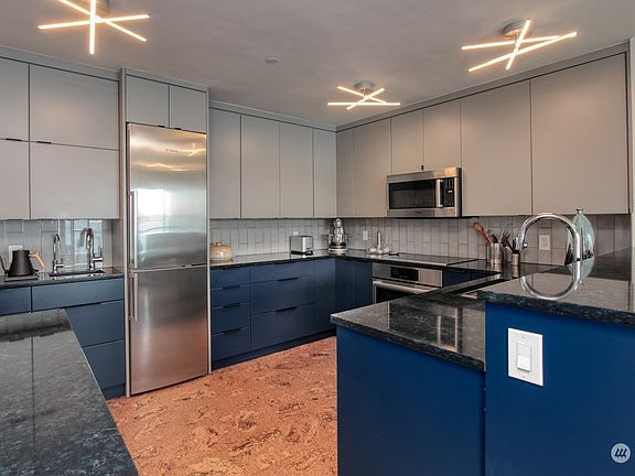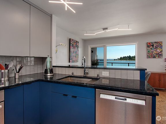 Eagle Harbor and Seattle Skyline are there for you to enjoy from 3 rooms and a balcony! The remodel on Unit 124 was done by a licensed contractor, using top level appliances and finish work throughout the entire home, no DIY here. 2 bedroom, 2 bath, Large Master with walk-in closet and en-suite bath. Full size washer and dryer in unit. Unit 124 comes with 2 covered parking spots and 2 storage units on site. Unit 124 is a beautifully upgraded second floor unit in a beachside community with many shared amenities. The location is perfect with an easy walk to/from Ferry, to downtown shopping and dining, to wineries and breweries, to museums, to parks, and more. It is a perfect weekend get-away or full-time luxury living residence.