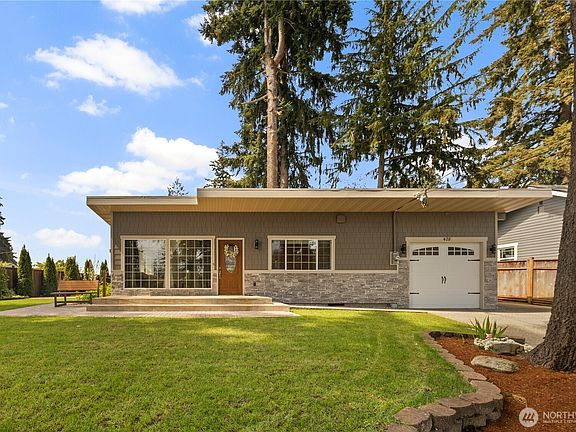 Experience refined living in this beautifully updated 2 bed, 1 bath, 1,072 Sqft rambler in the heart of Fircrest. Designed with luxury in mind, this home features an open-concept layout with top-of-the-line finishes throughout. The chef’s kitchen impresses with glossy white cabinets, quartz waterfall countertops, tile backsplash, and stainless steel appliances. An oversized living room and richly appointed bedrooms showcase hardwood floors, fresh paint, custom millwork, and modern lighting. The spa-inspired bath boasts a dual vanity, floor-to-ceiling tile, and heated tile floors. Sitting on a spacious 9,108 Sqft lot, enjoy a 1-car garage, RV parking, custom shed, gazebo, covered patio, and lush landscaping with sprinkler and drip systems.