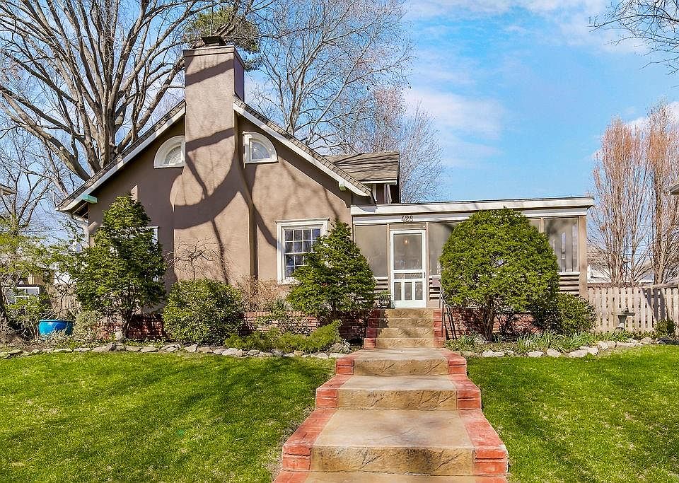 Fabulous home with Storybook charm and nestled on an elevated lot and picturesque tree-lined street. This home greets you with a delightful & spacious screened porch overlooking the yard and neighborhood. Step inside to a lovely living room with tall ceilings and stunning fireplace as a focal point. The circular flow of the home continues to a formal dining room with bay window and a cozy first floor den with a classic built-in book case. There is a sweet breakfast room open to the renovated kitchen featuring classic white cabinetry, marble counters and stainless appliances. Just outside the kitchen door is a private stone patio ideal for grilling and entertaining. The main floor bedroom, with en suite bathroom, is perfect for an additional primary or guest room. The second floor primary retreat features a spacious and light filled bedroom and bathroom with vaulted ceilings, and dressing room with laundry. The yard is a gardener's delight with lovely landscaping and a large raised beds. Newer roof and mechanicals. Conveniently located with quick access to Country Club Plaza, Loose Park, Brookside shops and Trolley Track Trail. A must see home!