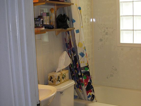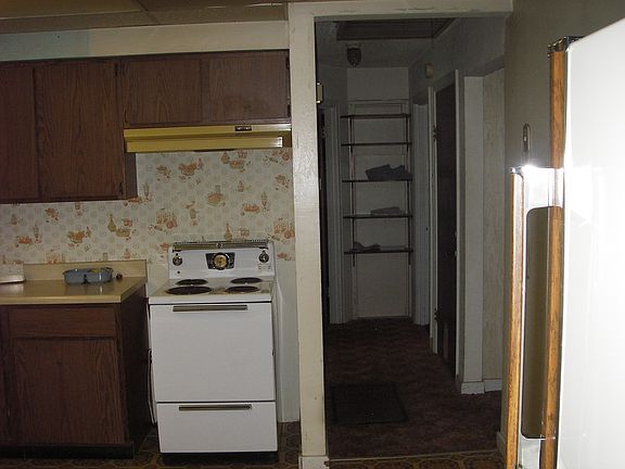 This frame ranch style home with basement and attached one car garage were built solid in 1957 on an 87 X 75 ft. lot. It has 2 bedrooms, 1 bath, and a big kitchen. With an 818 sq. ft. living area and an 818 sq. ft unfinished walkout basement, the home has ample space for a small family. The living room features a large picture window and a coat closet at the front door entrance. The carpeted, sky-lit, knotty pine breezeway has a doorway to a fenced back yard and to the garage. The house and garage roof were new in 1992 and have aluminum gutters all around. The doublewide, concrete driveway is in good condition.