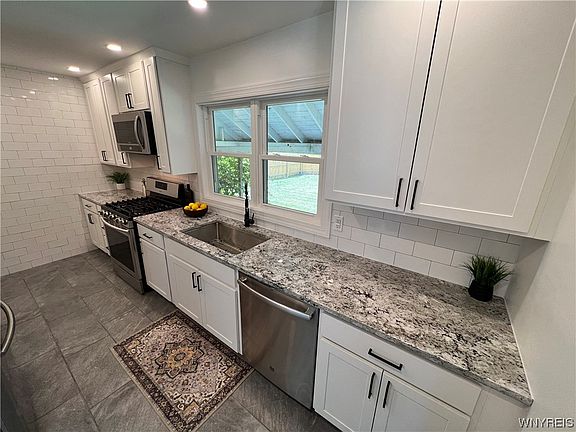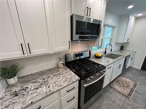 Beautifully updated 3 Bed, 1 bath home in the Town of Amherst. Wonderful location and easy access to all major highways and shopping centers. Ready to move right in. Incredible new kitchen with new custom shaker cabinets (soft close) doors and drawers w/granite counters. Stainless steel appliances all included as well as washer & dryer. Beautiful refinished (original) hardwood floors throughout the entire home. Completely remodeled full bath. New vinyl double hung windows, new exterior doors with storm doors & screens. Newer roof, newer HWT, newer furnace, new ac unit, new sump pump and fresh paint. Step out back with your concrete patio to relax on those wonderful Buffalo summer nights. New concrete walkway leads to a beautiful maintenance free trex front porch. Showings start immediately. Open House Saturday 7/8 11am-1pm and offers due Monday 7/10 @ 12pm
