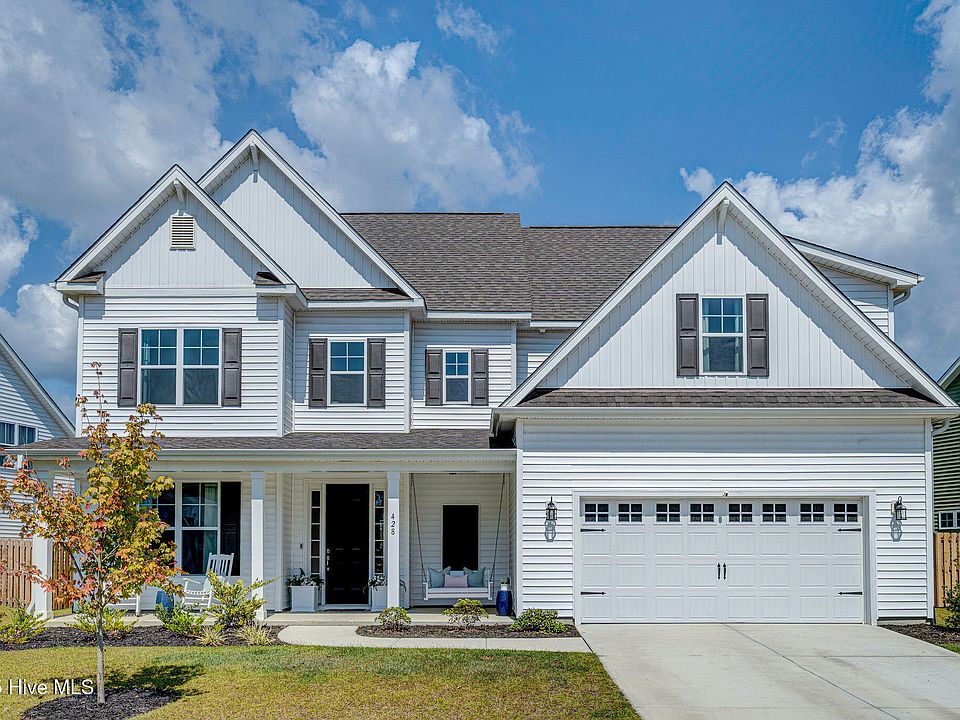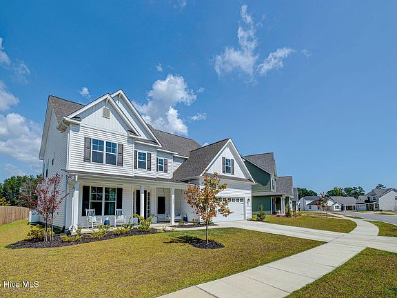 Situated on one of the best lots in Magnolia Reserve, this Masonboro plan by American Homesmith offers the perfect blend of space, style, and thoughtful upgrades. If you're searching for space and luxury, this 5-bedroom, 4-bath home delivers with 9-foot ceilings on both floors and an open, flowing layout. The kitchen shines with quartz countertops, subway tile backsplash, a gas range, breakfast area, and an oversized island overlooking the living room, complete with a cozy gas fireplace and custom trim. A formal dining room, first-floor guest suite, and convenient boot bench add thoughtful touches.