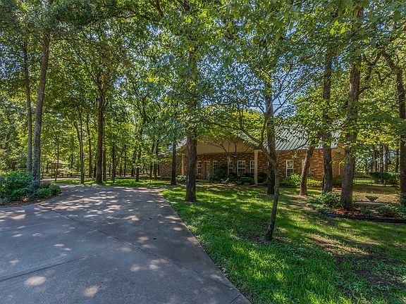The circle drive and oversized front porch is perfect to welcome family and friends to the beautifully landscaped and shade treed 1 acre lot in the Green Oaks Addition Cartwright Oklahoma. Located close to Lake Texoma it is perfect for a weekend getaway with a double car garage plus a 30x40 metal building to accommodate 39 ft. RV, boat, pickup and 15 x 15 workshop. The sunroom is perfect to watch the birds or step outside to the two decks.