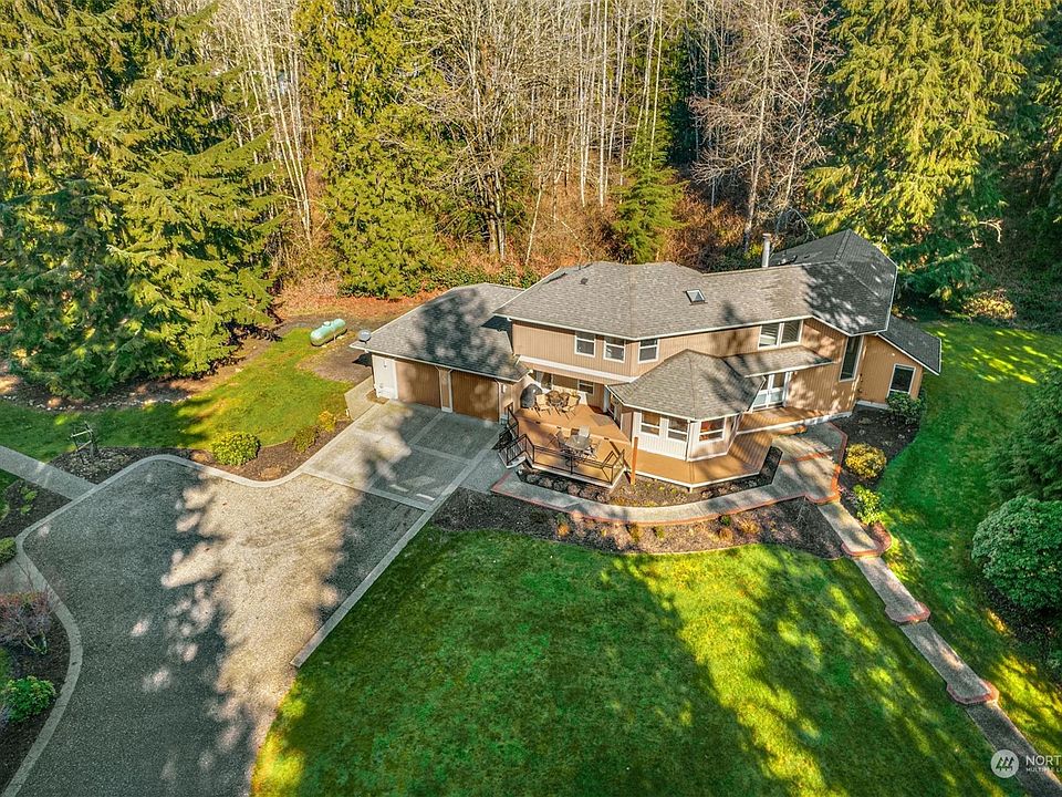 {IMPROVED PRICE} Distinctively unique and great for entertaining and gatherings. This home is discreetly positioned behind a private drive, unveiling a 3,047-square-foot residence with 3-bedrooms and 2.75-baths, exclusive outdoor living space, a captivating stone fireplace, out buildings and a complete woodworking shop. Step inside to discover a spacious open-concept kitchen with a substantial center island, a delightful breakfast nook, and a separate dining area. The main floor hosts a primary suite with vaulted ceilings, complemented by an open loft. Parcel is 6.16 acres.