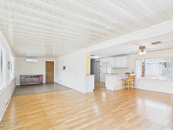 Great opportunity to buy in the desirable Fountain of the Sun an active 55+ golf course community. This is a nice clean manufactured home with lots of storage and 3 bedrooms. Huge add on doubles the square footage and has 2 mini splits to cool and heat these additional areas. It also has a generous sized work shop/storage shed; all on a 8952 sq ft corner lot! The front features a huge area of pavers for extra parking r patio area!