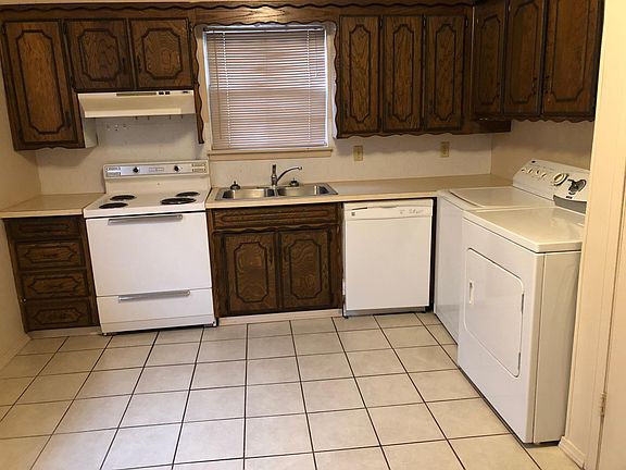 Two bedroom, 1 bath downstairs apartment in a six apartment complex. Refrigerator, range, dishwasher, washer & dryer all furnished. Central H/A. Tile and carpet flooring. Window blinds. Shower/tub combination. Tenant responsible for all utilities.