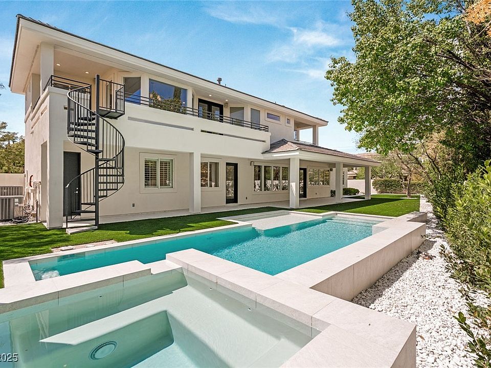 Brand-new poolPrivate retreatRiver rockExpansive turf areaLight stuccoDesert elementsEuropean oak flooring