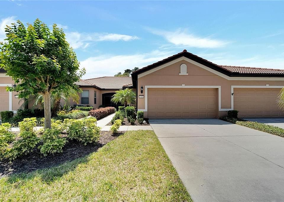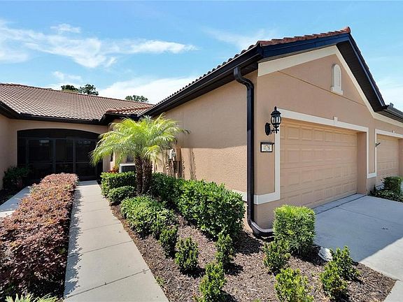 Your home search is over! Impeccably maintained, low maintenance 2 bed, 2 bath, 2 car garage villa with EXTRA bonus room (den/office/hobby room). This beautiful villa is located in the sought after Premier 55+ community of Southshore Falls and is SITUATED ON A PREMIUM LOT OVERLOOKING THE WALKING TRAIL.. SO NO BACKYARD NEIGHBORS. Enjoy your morning coffee or perhaps an evening beverage from the privacy of your screened lanai which overlooks a quiet natural expansive walking trail. Enter this beautiful home through a screened porch, into a light & bright foyer custom with designed tiled Home boasts an eat-in kitchen, and additional breakfast bar, granite counter tops, custom solid wood cabinets & pantry. Solar tube lighting is a wow factor which provides great light & also a decorative fixture ceiling. Tastefully painted spacious dining a & living room CARPET HAS BEEN REPLACED WITH BEAUTIFUL LUXURY FLOORING. Primary bedroom has a spacious walk in closet with an en-suite bathroom with double vanities & glass walk-in shower enclosure. Spilt bedroom plan so plenty of privacy for overnight guests. Screens on front door and patio which allows for a wonderful cross breeze. This is a pet free free and smoke free home. Included in the HOA is Landscape maintenance reclaimed water irrigation, mowing, weeding, fertilization, exterior pest control and tree and shrub trimming. 24/7 gated & guarded entrance, 14,000 sq ft Clubhouse 2 Swimming pools, resistance pool, Hot tub/spa, state-of-the-art Fitness center, Bocce ball, Tennis & Pickle ball courts, Library/Game/Card room, Billiard room, an Arts/Craft room, Internet Cafe, & a Nature trail, Schedule an appointment to view, you will not be disappointed. Some furnishings & accessories available for purchase separate