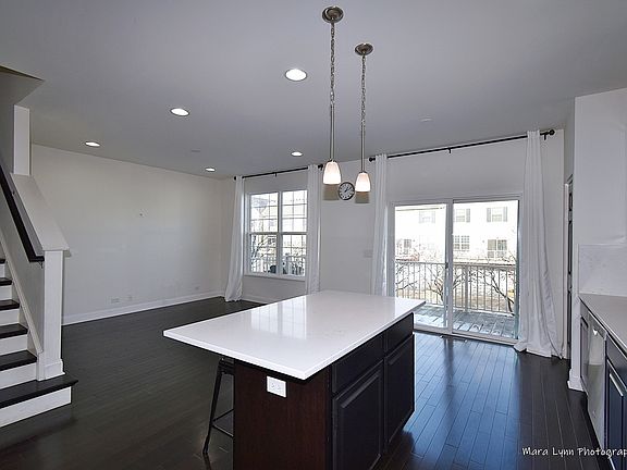 Exceptional Town Center beauty with all the latest finishes and move-in ready too! Spacious- brick front -end unit townhome has all the room you've been looking for! From the oversized living room/dining room with gorgeous hardwood floors and beautiful natural light to the kitchen/family room with access to the expansive balcony you will love this home! Entire main level has 9' ceilings! The kitchen has plenty of 42" dark stained cabinets, gorgeous quartz countertops & backsplash, SS appliances and a quartz breakfast bar with barstool seating and additional storage. The lower level offers space for an office or media room and big laundry room with utility sink. The main bedroom has recessed lighting, walk-in closet and private bath with double door entry, dual sink vanity, soaker tub and stand alone shower with glass doors. Two good size secondary bedrooms and a full hall bath complete the 2nd floor. Two car attached garage with blue tooth enabled openers-this awesome location is just minutes from the Randall Oaks Park & Zoo and the Randall Rd. corridor that has abundant shopping and dining to enjoy! Quick access to I-90! Welcome home...