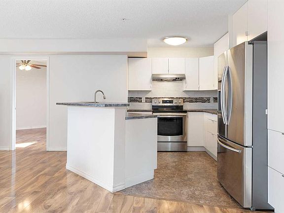 Remodeled main-floor condoModern styleBright open living spaceSpacious kitchenRaised eating islandStainless steel appliancesModern cabinetry
