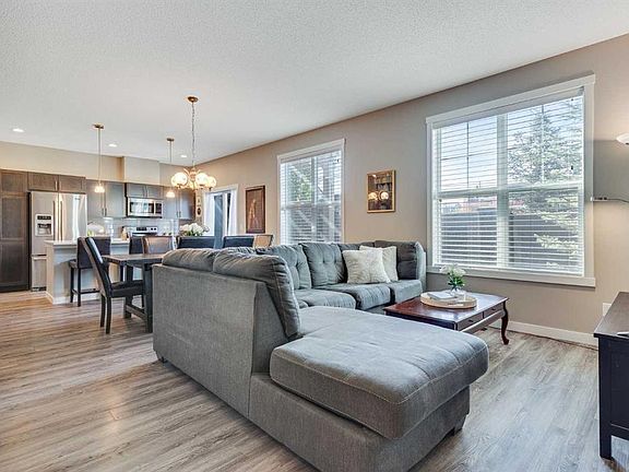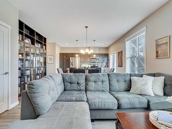 OPEN HOUSES: Saturday, November 8, 1:00-3:00pm & Sunday, November 9 from 12:00-2:00pm. This charming townhouse combines style, comfort & functionality with a layout designed for everyday living. Step into a bright, open-concept main floor where a spacious living room with a custom built-in library wall flows seamlessly into the dining area. The kitchen is both beautiful & practical, featuring rich walnut-stained cabinetry, quartz countertops, a breakfast bar & easy-care vinyl plank flooring, with sliding patio doors leading to your private outdoor space, perfect for summer BBQs or evening relaxation. A convenient half bath completes the main level. Upstairs, discover three well-appointed bedrooms, including a primary suite with its own walk-in closet & private ensuite, while the additional bedrooms share a full bath. The fully finished basement extends the living space with a cozy family room, fourth bedroom, full bathroom & laundry area, making it ideal for growing families or guests alike. Complete with a single attached garage plus parking on the driveway for one more vehicle, and backing onto a lush green space with trees, and benches that invite you to slow down & enjoy nature right outside your door. The vibrant community of Nolan Hill is known for its scenic ravines, parks, playgrounds & miles of walking paths. With easy access to shopping centres, schools, restaurants & major roadways, this property offers the perfect blend of comfort, convenience & community living.