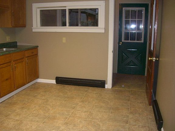 Living room and dining room are all open. First floor laundry room off of spacious kitchen with wood cabinets. Modern bathroom with tub and shower. Lower level is street level, not finished, great for storage, bikes,etc. Attic is unheated and not finished.