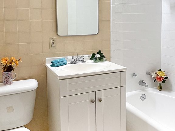 Freshly painted apartment with wood flooring in living, dining rooms and kitchen. Walking distance to beach and Southshore Shopping Center.