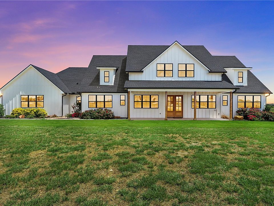 This gorgeous property boasts 4,100 sqft, housing 4 bedrooms, 4 bathrooms, a versatile office/dining room, and an additional media room upstairs. The kitchen, equipped with top-tier appliances and custom finishes, is a culinary enthusiast’s dream. Unique highlights include a hidden butler’s pantry, an expansive laundry and mudroom, and a well-lit open living and dining in a harmonious indoor-outdoor flow. The owner’s suite defines luxury with its large soak tub, walk-through shower, and ample walk-in closet. Take in the stunning Texas sunrises and sunsets from your broad front and back porches. The open 5-acre land, ready for your personal touch, allows opportunities for a pool or livestock. This meticulously crafted property by W4 Construction also features an insulated three-car garage with an extra area for a workshop or gym. The 30X40 barn/metal shop outfitted with electricity and a roll-up door is a fabulous bonus! Boasting top-ranking Crawford ISD, and located under 15 minutes to Waco, Crawford, and i35, you can enjoy the delight of a country living yet being conveniently close to the city.