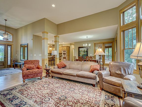 Stunning walkout rambler offering main-level living & beautiful views of the St. Croix River Valley! Enjoy an open layout flooded w/ light & adorned w/ birch wood floors & maple trim. The eat-in kitchen features a center island, granite counters, alder wood cabinets, SS appliances, & a walk-in pantry, while the inviting living room offers a stone fireplace & built-in cabinets. Relax in the owner’s suite w/ a walk-in closet & ensuite bath boasting a jetted tub, heated floors, walk-in shower, & double vanities. The expansive LL is an entertainer’s dream w/ a sizable living area, wet bar, stone fireplace, built-in cabinets, & heated floors. Spectacular attached, 6-car heated garage w/ 3 stalls on each level connected by a paved driveway & access doors. Situated on nearly 2 acres in a quiet neighborhood, enjoy a private, spacious yard, generous screened porch, walkout deck, & beautiful landscaping. Don’t miss this amazing opportunity!