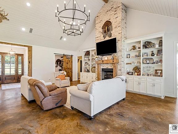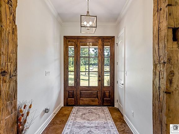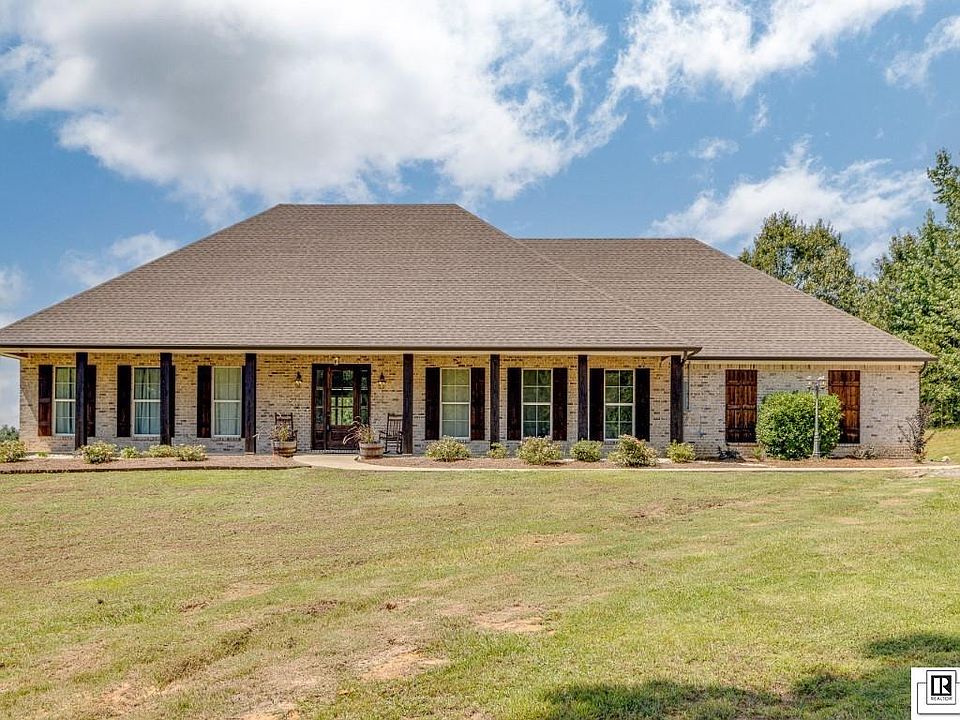 Luxury Meets Country Living in West Monroe/ Calhoun 3 bed, 2.5 bath custom home on 5.22 acres backing up to the beautiful Landry’s Vineyard. This thoughtfully designed split floor plan offers soaring 18 ft ceilings in the living room and a chef’s kitchen with walk-in pantry. The luxurious master suite boasts his & her walk-in closets, a 4x4 custom tile shower, and a freestanding tub. Additional features include a private office with built-ins, Jack & Jill bath between guest bedrooms, heated/cooled workout room attached to the garage, and a 30x30 shop with power and water. Relax or entertain on the 12x28 covered patio with fireplace and wood ceilings overlooking the vineyard.
