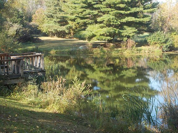 Stunning!! One of a kind retreat. Spectacular 2 story nestled on a wooded lot (1.34 acres), surrounded pine tress, overlooking a pond. Beautiful kitchen and adjoining 2 story great room (with log burning fireplace and a wall of windows facing the pond), master suite, loft, granite counters, stainless appliances, slate floors, fireplace, brand new HVAC. Outside: Wooded, pond, 2 stone patios, hot tub, 2 car detached garage, large shed & much more!! 5 minute walk to Alum Creek and easy access to I71 and 36/37.