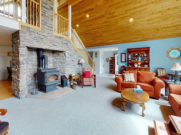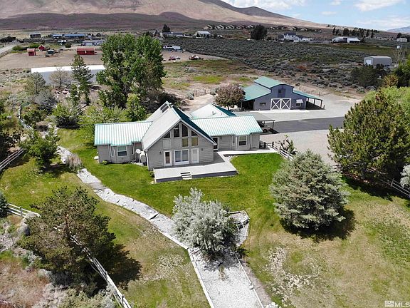 This is a Must See Property! Too many amazing features to list them all. This property has amazing views of the Humboldt River, Sonoma Range, Winnemucca Mtn. and the valley. 2513 sq. ft. home, 5 acres, 2000 sq. ft. shop with RV doors, on both ends, 1800 sq. ft detached garage, with loft above. Covered RV parking, water fall, creek, and landscaped. The family room is open with high cedar lined ceilings and the entire front wall is windows so you can see in beautiful views., There is a wood stove with beautiful rock work in the family room. The kitchen has an island and breakfast bar. The master bedroom is large with a walk in shower & double sinks. Large walk in closet. The other two bedrooms are on the opposite end of the house. There is a loft that over looks the family room. There is a game room with 1/2 bath and bar. There is also a spacious sun room. Call and schedule a viewing to see this amazing home.