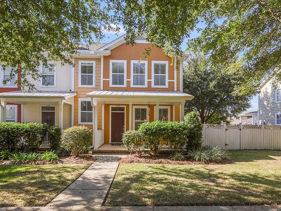 This isn't your average Southwood townhome. Not only is it an end unit, this townhome also comes with 3 bedrooms each with their own bathrooms. Each floor has its own primary bedroom with a private ensuite bath as well as a 1/2 bath downstairs for guest. Nice open floorpan with living and dining space connected to kitchen with a bar area. Upstairs is an additional sitting room with 2 bedrooms and 2 bathrooms. Out back is the enormous backyard with screened porch, patio, hot tub and pergola to enjoy the oak tree view and privacy of the outdoor space. The yard is larger than many single family homes in Southwood. The HOA fees covers exterior maintenance, yard work and all Southwood Amenities. You don't want to miss out on this opportunity for a townhome very close to the town center, pool and clubhouse to enjoy all Southwood has to offer.