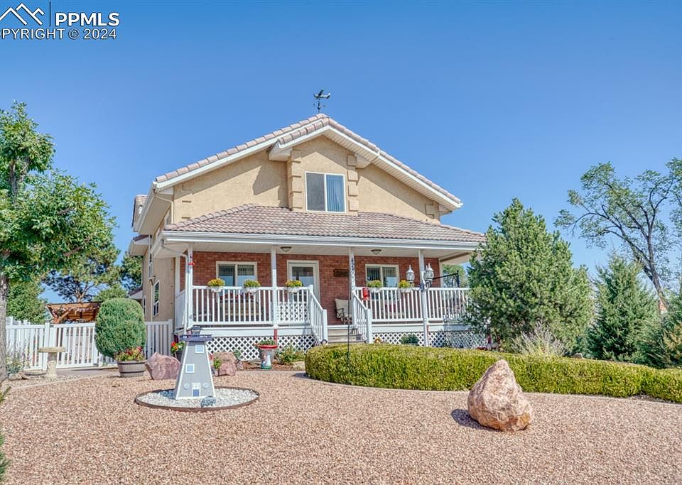 TRUE MAIN LEVEL LIVING!! Enjoy the main level master suite, offering an attached bathroom with a large walk-in closet. Home has ductless A/C; keeping things cool and comfortable. In-floor radiant heat throughout the home. LOW Utility bill. This is a solid home with polysteel construction which means solid concrete wall construction, R-20 insulation & excellent overall inside comfort. Entering, you are met with a sizable living room with 9+ ft tall ceilings. The eat-in kitchen features granite countertops, gorgeous cabinets, a large island, & dual sided pantry. Adjacent is the laundry space with a walk-out to an oversized 2-car garage (672 sqft) with heated floors, built-ins, and workspace. Step out of the garage and into the backyard oasis featuring a custom 14x24 patio, pergola, concrete pathways, gorgeous landscaping and a workshop shed with electricity - a comfortable and inviting space. The entertainment options continue in the basement, the large family room set up as a home theater with a gorgeous wet bar. The basement is complete with storage and a full bathroom. Upstairs showcases two spacious bedrooms, both with oversized walk-in closets, and a 3/4 bathroom with a walk-in closet itself! Boasting immaculate landscaping, oversized garage, workshop shed, and more, all on a large corner lot, this home is a must see! Tucked in a quiet and quaint neighborhood yet east access to the CS Airport, I-25 plus Located between Peterson AFB and Ft. Carson. Great for Space Force!! Come and check it out!