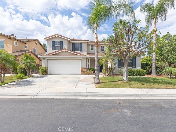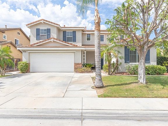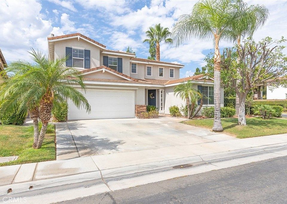 Welcome to this beautiful and spacious 5 bedroom, 3 bath home located in the highly sought-after Montecito Estates Riverwalk community. Situated in a gated neighborhood, this two story home offers the perfect blend of comfort, style and convenience. This corner lot home has great curb appeal with refreshed exterior paint, mature trees and luscious plants. You'll love the covered front porch area as you enter the home. Inside, you'll be greeted by soaring ceilings and an abundance of natural light flooding through the top windows, creating a bright, open atmosphere. The entire first floor has brand new luxury vinyl plank flooring and upgraded, modern baseboards. A generously sized bedroom on the main floor is perfect for guests, a home office or multi-generational living. Located right next to the bedroom is a recently remodeled bathroom featuring new walk-in shower, vanity, and lighting. Head past the separated formal dining and living rooms, with ample space for entertaining and family gatherings, to the kitchen. The kitchen boasts freshly painted white cabinets with new black hardware, granite countertops, and kitchen island that opens to a dining area and cozy family room, making it perfect for hosting or everyday living. The family room is warm and welcoming with a ceiling fan and classic fireplace, ideal for chilly evenings. Located downstairs, the laundry room offers additional storage and access to the two car garage. Upstairs, the freshly painted banister leads you to a spacious primary suite, three additional bedrooms and full bath. The primary suite offers a peaceful retreat with laminate flooring, ceiling fan, and ensuite bathroom. Enjoy the luxury of a separate soaking tub, walk-in shower, newly painted double sink vanity with black hardware and two closets - one being a walk-in. Three other spacious bedrooms are down the hall, as well as, the secondary full bathroom with newer vanity, tile flooring and a tub/shower combo. Head outside to the backyard that boasts an abundance of fruit trees, grassy area, cement patio and separate patio cover for those sunny days. The community, itself, features a park, picnic tables, sports areas, and large grassy space for residents to enjoy. This home is located close to the 91 & 15 freeways, schools, shopping, La Sierra University, entertainment and much more!!! Did I mention the best thing? THE SOLAR IS PAID OFF!!! YES, THE SOLAR IS PAID OFF!!! Don't let this home pass you by!!!!
