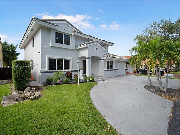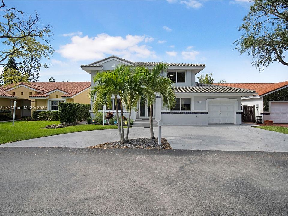 Completely remodeled oversized corner lot in the desirable Lakes of the Meadow. 6,095 s/f lot with 1-car garage and circular driveway. This home features 5 bedrooms and 3 bathrooms in 3,430 total s/f. New roof with concrete gray tiles(2018), new water heater, new a/c, crown molding, and new high impact windows and doors. Remodeled bathrooms and new kitchen with new plumbing, electricity, wood cabinets, and Italian quartz. New stair with tiles and stainless-steel railing, and new tiles on the second floor. Covered terrace with ceiling fans overlooking the relaxing pool and beautiful lake.