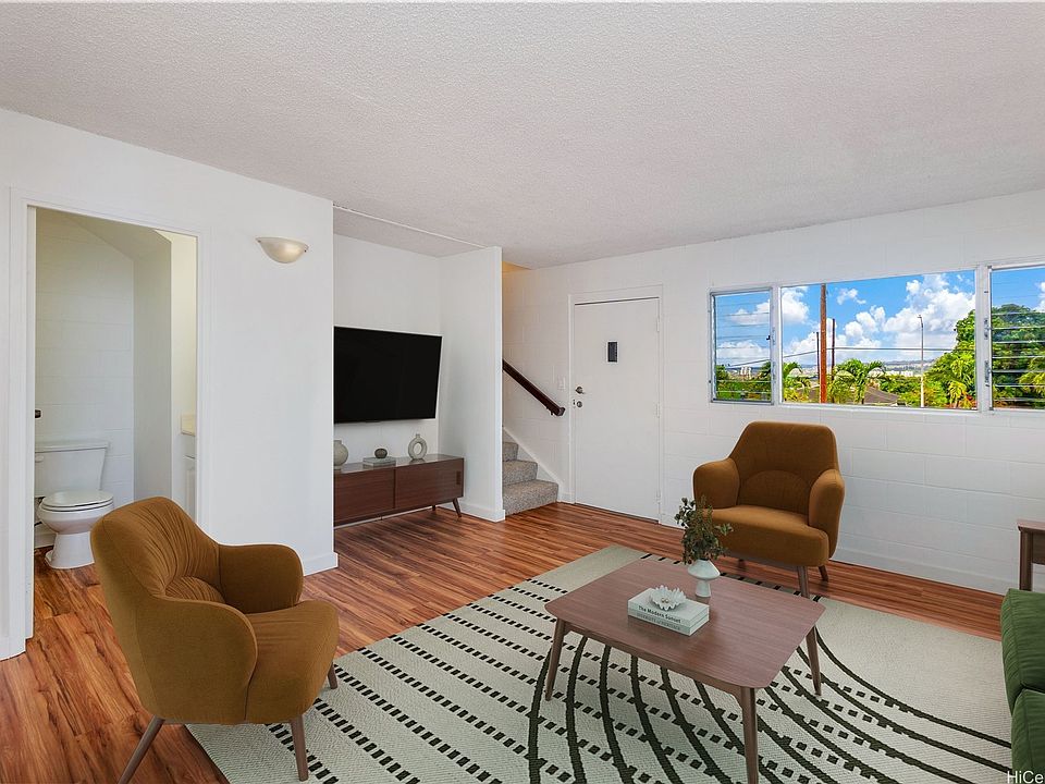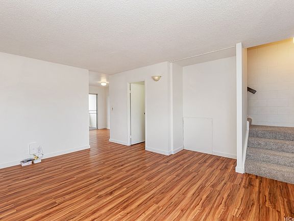 This spacious split-level townhome offers over 1,100 square feet of comfortable living space with no neighbors above. Upstairs, you’ll find all three bedrooms and a full bathroom, providing privacy from the main living area, while a convenient half bath is located downstairs. The home features a bright and open living room, new luxury vinyl plank flooring, new carpet, a freshly painted interior, and new kitchen countertops. A spacious lanai off the kitchen and dining area provides the perfect spot to enjoy the fresh island air, creating a seamless indoor-outdoor living experience. TWO ASSIGNED PARKING STALLS are included. Foster Heights Villa is a low-rise walk-up located near Pearl Harbor, with easy access to the freeway and just minutes from military bases. Residents can also enjoy the association’s pool, with HOA fees covering the internet, water, and other common expenses. One or more photos have been enhanced.