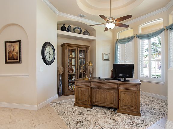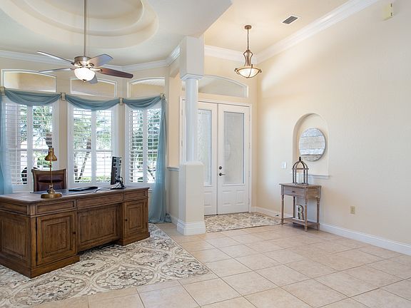 Spectacular, 3 bedroom / 3 bath CBS pool home in gated community of St Andrews Isle in Suntree. Grand entry with amazing pool view, enclosed lanai, and lake in the background. 12-ft ceilings in entry, dining room, and office; 10-ft ceilings in all other living areas, including bedrooms. Crown moldings in living areas and master bedroom. Meticulously maintained with numerous updates and upgrades, including new roof (2014), solar pool heater (2015), pool resurface (2017), kitchen with upgraded Kitchen Aid appliances and gas cook top with pot filler (2017), HVAC (2009). Common areas, including dining room and lanai have ceiling-mounted speaker system with independent controls. Three-car garage with two over-sized stalls. Other features include central vacuum system, pool alarm, removable pool safety fence, integrated alarm system (active monitoring, 2-way voice, intrusion, motion, smoke/fire, carbon monoxide, ZWave compatible), WIFI-enabled garage door openers, accordion hurricane shutters, plantation shutters, transferable termite bond, and more. This is truly a turn-key home in a great neighborhood convenient to beaches, shopping, golf courses, I-95, Patrick AFB, and top-rated schools.