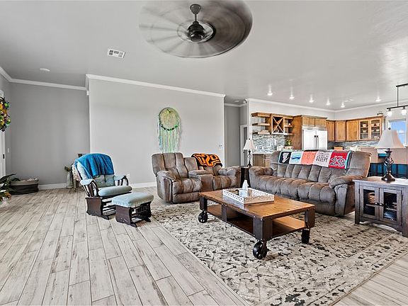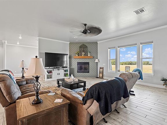Spanning 3,635 sq ft on 15 acres, this stunning 3-bedroom, 3.5-bath home offers a functional split floorplan with every bedroom featuring its own en-suite bath. The master suite includes a connected office, private patio access, and a luxurious bath with a soaking tub, walk-in shower, dual sinks, and a spacious closet complete with built-in vanity and dressers.