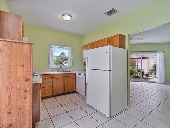 BRIGHT AND AIRY LAYOUT, SCREENED-IN LANAI, HIGH CEILINGS, AND ASSIGNED PARKING! This charming 2-bedroom, 2-bath condo offers 1,100 sq ft of comfortable living with a functional split-bedroom layout. The primary suite includes its own bathroom and private access to the lanai, while the spacious living area features 9-foot ceilings and plenty of natural light. A private laundry room equipped with a washer and dryer adds everyday convenience. Nestled in a well-maintained building in Golden Gate City, this home is close to everything — shops, restaurants, parks, and more — making it an excellent choice for year-round residents or seasonal getaways. THIS PROPERTY QUALIFIES FOR A 1% LENDER INCENTIVE IF USING PREFERRED LENDER, INQUIRE FOR MORE DETAILS** Renderings in this listing have been virtually staged