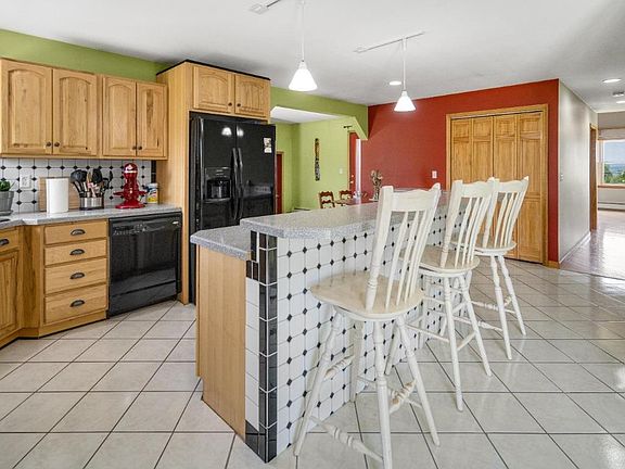 Discover serenity & rural-inspired design in this 2-bedroom (+ large office!), 2-bathroom ranch home, flawlessly situated on 17 sprawling acres. Meticulously cared for by the same owners since it was built in 2005. The main level features large entry-way, well-designed kitchen w/ island, a beautiful living room w/ custom-built fireplace, mantle, & cathedral ceilings & huge windows to take in the MAGNIFICENT views. Main floor also features a BR, a full BA, & the large primary BR w/ ensuite bath. Step down into the finished walkout basement, where you'll find a massive family room w/ a bar that can be use for whatever your heart desires. Lower level also features an office/bedroom, a storage room, wood stove (low utility bills!) and a utility room with laundry hookups. Property offers a newer, large deck, fruit trees, gardens, storage shed, wood shed, etc. However, the true magic of the property lies in the 360 degree, panoramic views, an absolute must see! Check out the virtual tour!