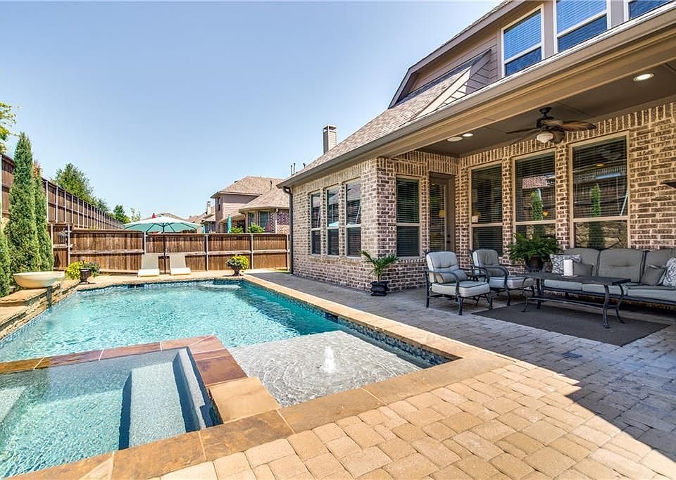 This highly sought after Whitley Place, Highland Homes design features 2 bedrooms down. Here, you will enjoy the private, secluded and spa-like outdoor living space as you refresh yourself in the sparkling play pool. Hang out on the tanning ledge with your favorite book, or, hop in the spa. Enter the home, and a winding staircase leads you up to a large game room, 3 bedrooms and media room. Entertaining is a snap in the kitchen with generous granite counter space, stainless appliances and an open floor plan. Whitley Place has several hike/bike trails along creeks, numerous catch and release ponds, playgrounds and community pools. Located within the very desirable Prosper ISD, it is just a short stroll to Cockrell Elementary School. Plus this home does not have additional PID or MUD tax which will save you up to $25,000 on the cost of ownership.