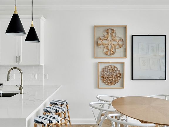 Top-floor unit with garage parking in a modern, c. 2019 build in the heart of Roslindale Village. This south- & west-facing unit is rich with natural light and neighborhood, treetop views. Take the elevator to the fourth floor; enter to a quartz kitchen with designed details, and a large, open-concept living/dining room. The first bedroom is situated opposite a full-bathroom and in-unit laundry, and the primary suite features a walk-in closet with built-in shelving, and an oversized bathroom with a Grohe shower system. Professionally managed building with high owner-occupancy. Steps to the heart of Roslindale Village, with numerous eateries and local shops centered around the Commuter Rail station with direct access to Forest Hills or South Station; a few minutes' walk to the Arboretum entrance at Peters Hill.