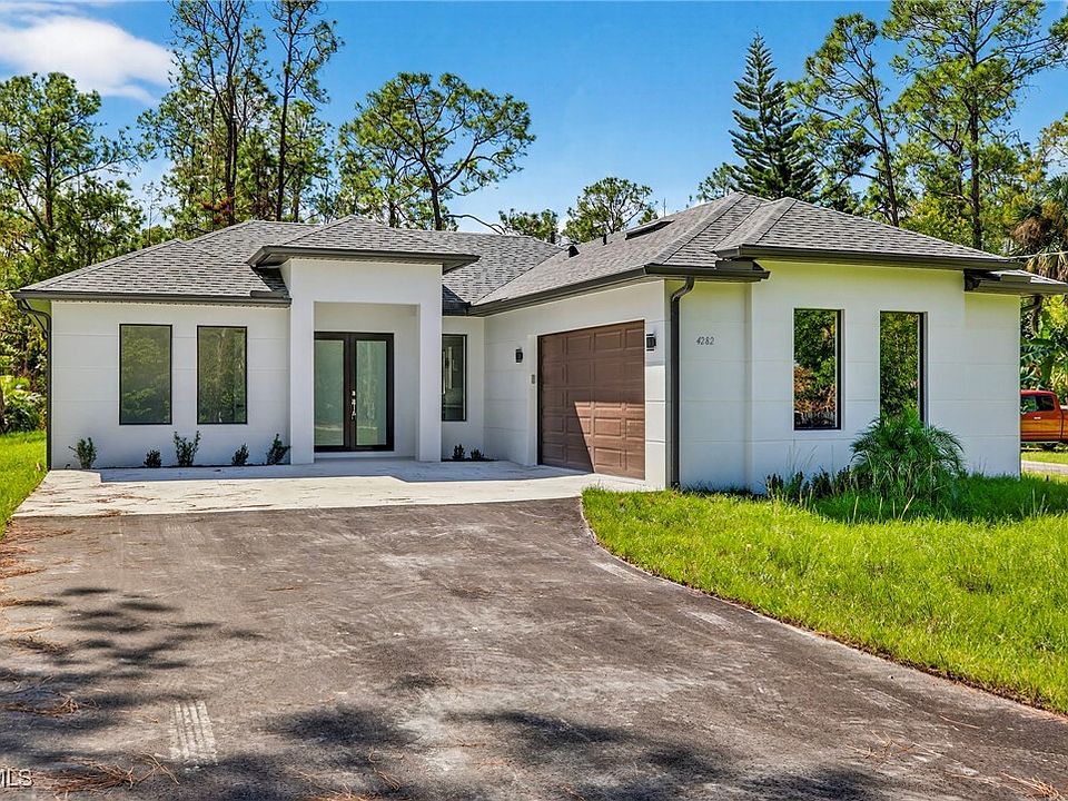 Move-In Ready. PRICE REDUCTION! Lovely 3 BEDROOM PLUS DEN, new construction. GREAT LOCATION! Just minutes from supermarkets, pizza parlor, nail salon, and more. This high quality, beautiful new-build showcases an open floor plan with great attention to details. A bright and airy main living space; light filled den; tile throughout; custom wood cabinets kitchen with quartz countertop, a waterfall island, and beautiful light colored backsplash; soaring high tray ceilings in the living room and master bedroom; 8-ft doors; impact windows and doors; automated sprinkler system; and asphalted driveway. Golden Gate Estates is the perfect combination of peaceful, rural setting, just a short driving distance from all the amazing amenities Naples has to offer.