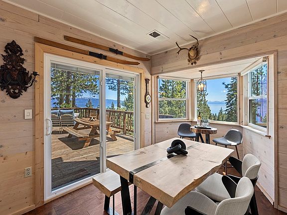 The ultimate Tahoe cabin with panoramic lake views, 'Old Tahoe' charm, private HOA lake access with double decker pier, buoy field, and scenic picnic area. Miles and miles of hiking trails just blocks from your door. This 2-bed, 2-bath retreat offers sweeping lakeviews from every room. Enjoy the beautiful stone fireplace, wooded accents, hardwood floors, spacious lakeview deck perfect for morning coffee or sunset cocktails.
