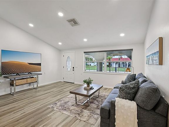 Welcome to your slice of paradise in the GOLF-CART friendly, WATERFRONT COMMUNITY of Gulf Harbors! This beautifully renovated 3-bedroom, 2-bathroom home offers 1,454 square feet of comfortable living. When you arrive, you’ll notice the lush tropical landscaping, archway details & gorgeous mosaic tile patio. Step inside and you’ll find a bright and airy OPEN LAYOUT with VAULTED CEILINGS, recessed lighting, NEW FLOORING, fresh paint, and stylish updates throughout. The kitchen is a standout with GORGEOUS QUARTZ COUNTERTOPS, stainless steel appliances and plenty of cabinetry and countertop space, perfect for entertaining or a quiet night in. The spacious primary bedroom abounds in natural light, and the additional two bedrooms are perfect for guests or a home office. All bedrooms are outfitted with Levolor light blocking window shades. Both bathrooms have been tastefully redone with MODERN FIXTURES and TIMELESS TILEWORK. Out back, enjoy your fully fenced, lush yard with paver patio and NO REAR NEIGHBORS. All major systems have been recently updated giving you peace of mind: NEW ROOF (2023), NEW HVAC (2023), NEW ELECTRICAL PANEL (2023), NEW WATER HEATER (2023). The Gulf Harbors Civic Association hosts neighborhood events throughout the year - joining is optional for a low annual fee, which also gives you access to a community BOAT RAMP to enjoy the Gulf waters. You can also join the Gulf Harbors Beach Club for just $200/year for your very own PRIVATE BEACH – a rare perk that gives you a spot to relax by the water, grill your fresh catch of the day and watch the sunset. This is more than just a home, it's the COASTAL LIFESTYLE you've always wanted.